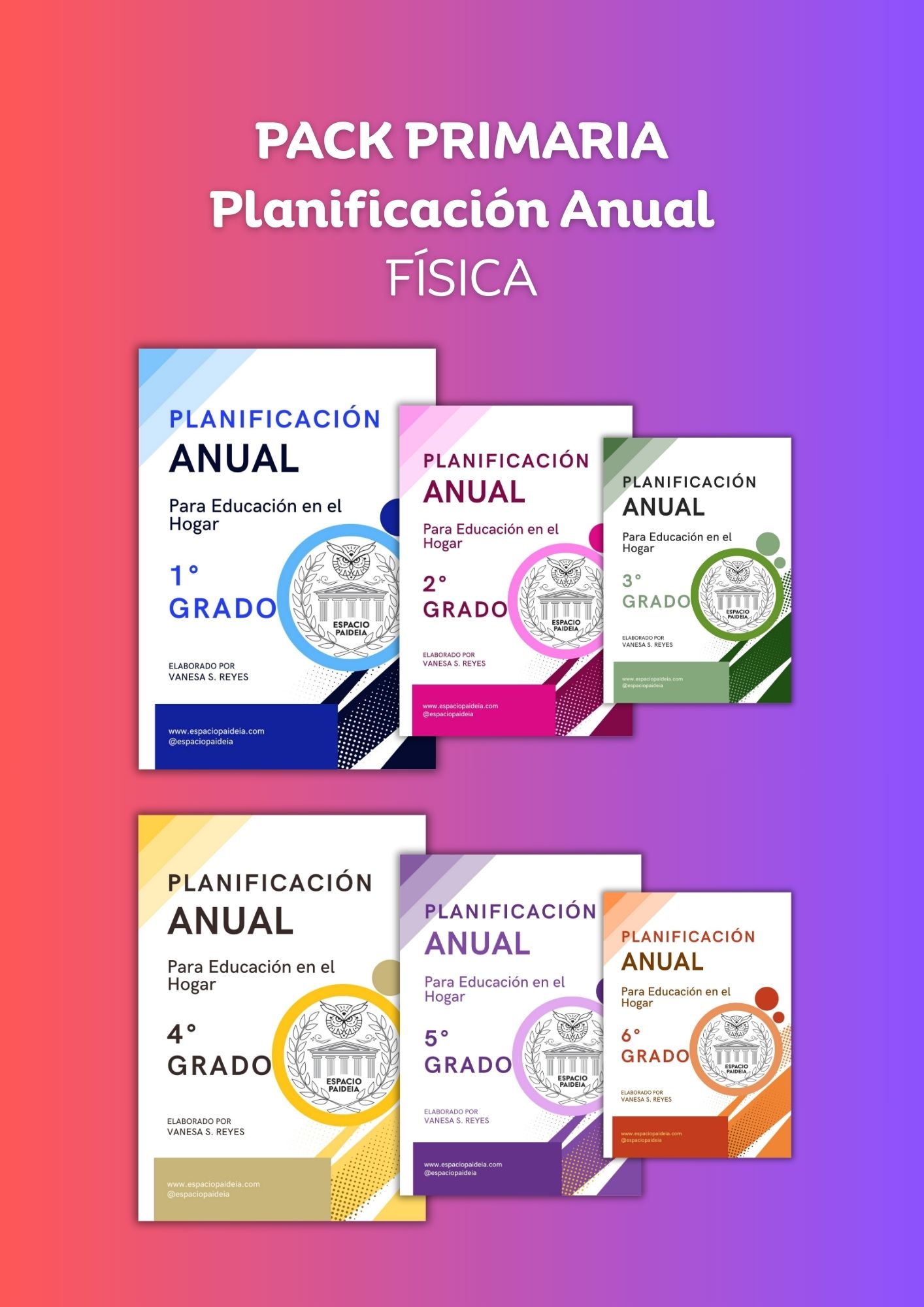 El Pack Primaria Completa en formato físico incluye las planificaciones anuales completas de 1.º a 6.º grado, impresas y listas para acompañar todo el recorrido de la educación primaria en el hogar.